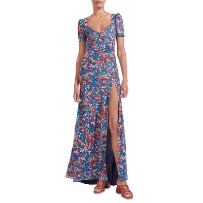 STAUD Женское темно-синее платье макси Lea с цветочным узлом и разрезом спереди BHFO 2154, Rainbow flower market