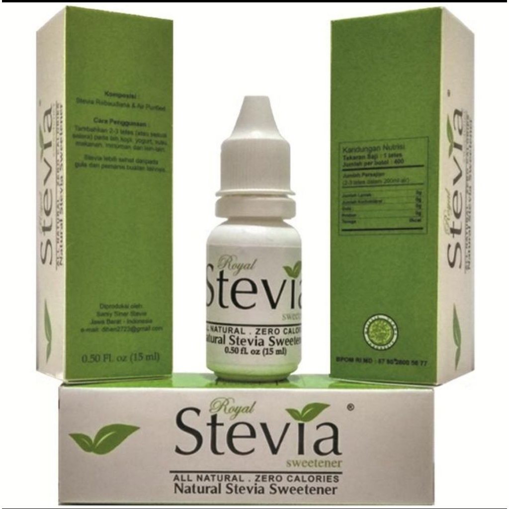 Royal Stevia adalah salah satu produk yang terbuat dari ekstrak daun Stevia Rebaudiana Bertoni dengan metode pengolahan alami, sehingga menghasilkan produk yang berkualitas tinggi dan aman untuk dikonsumsi.