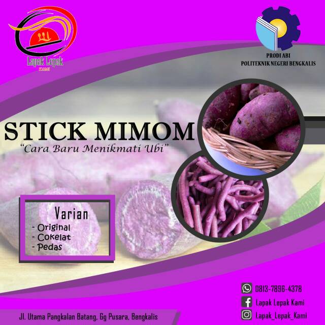 Kini telah hadir stick ubi ungu dengan penampilan dan cita rasa yang sangat menggugah selera, dan pasti bisa menemani hari mu menjadi luar biasa. Stick mimom ini dibuat dari bahan berkualitas terbaik, hanya untuk Anda yang bercita rasa tinggi.