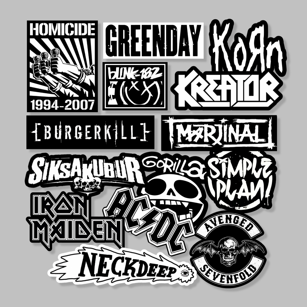 STICKER BAND METAL MUSIC ROCK ISI 15PCS HITAM PUTIH STICKER HELM, LAPTOP, CASE HP VOL 10