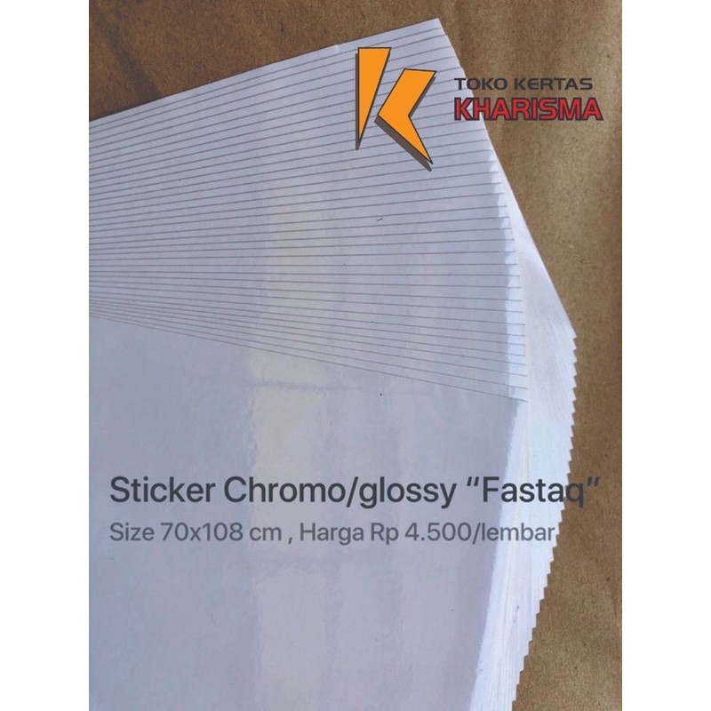 Sticker Chromo adalah kertas Sticker Semi Glossy yang biasa di gunakan untuk di Print , Cetak atau Sablon . Permukaannya semi glossy sehingga bisa di print dengan tinta art paper.
