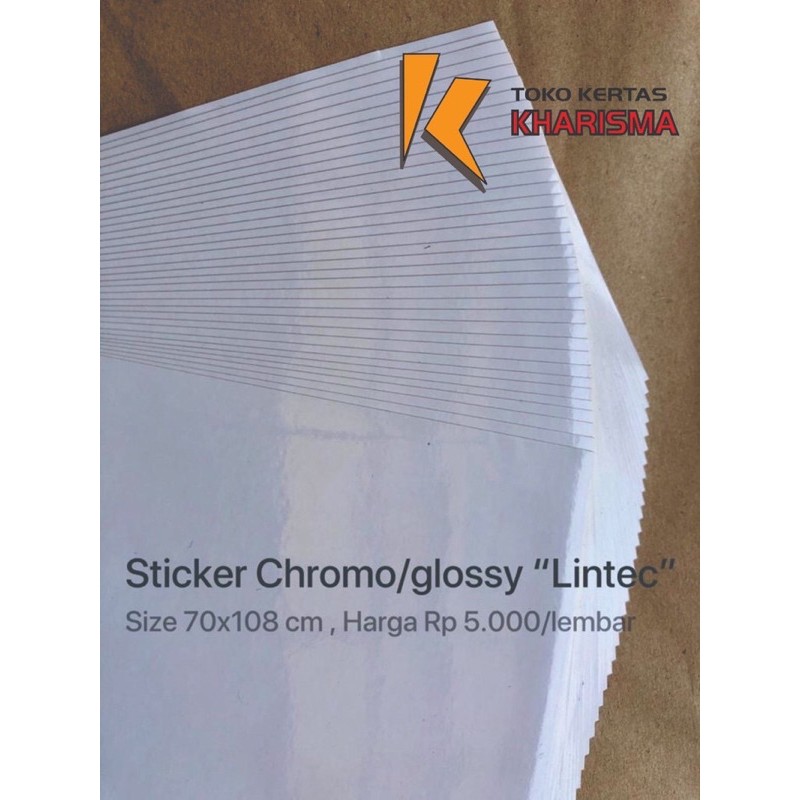 Sticker Chromo adalah kertas Sticker Semi Glossy yang biasa di gunakan untuk di Print , Cetak atau Sablon . Permukaannya Semi Glossy sehingga bisa di Print dengan tinta art paper.