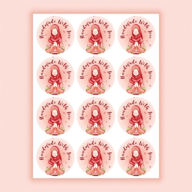STICKER HANDMADE WITH LOVE HIJAB CUTE THANK YOU LABEL 01