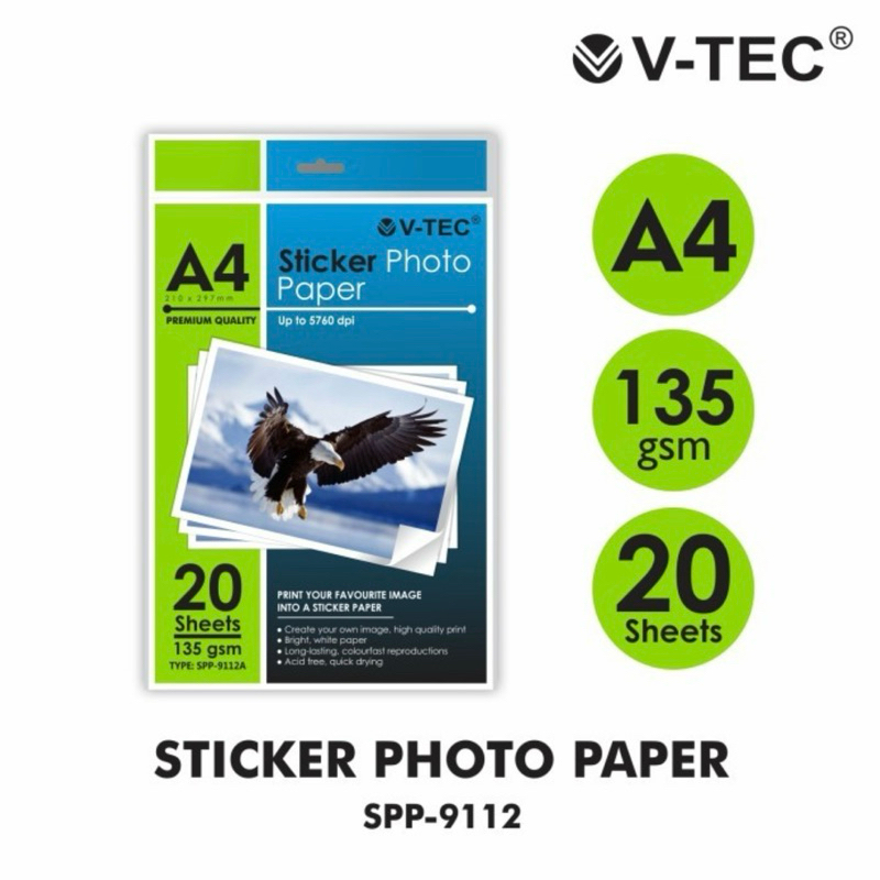 STICKER KERTAS FOTO / STICKER GLOSSY PHOTO PAPER V-TEC 20 LEMBAR