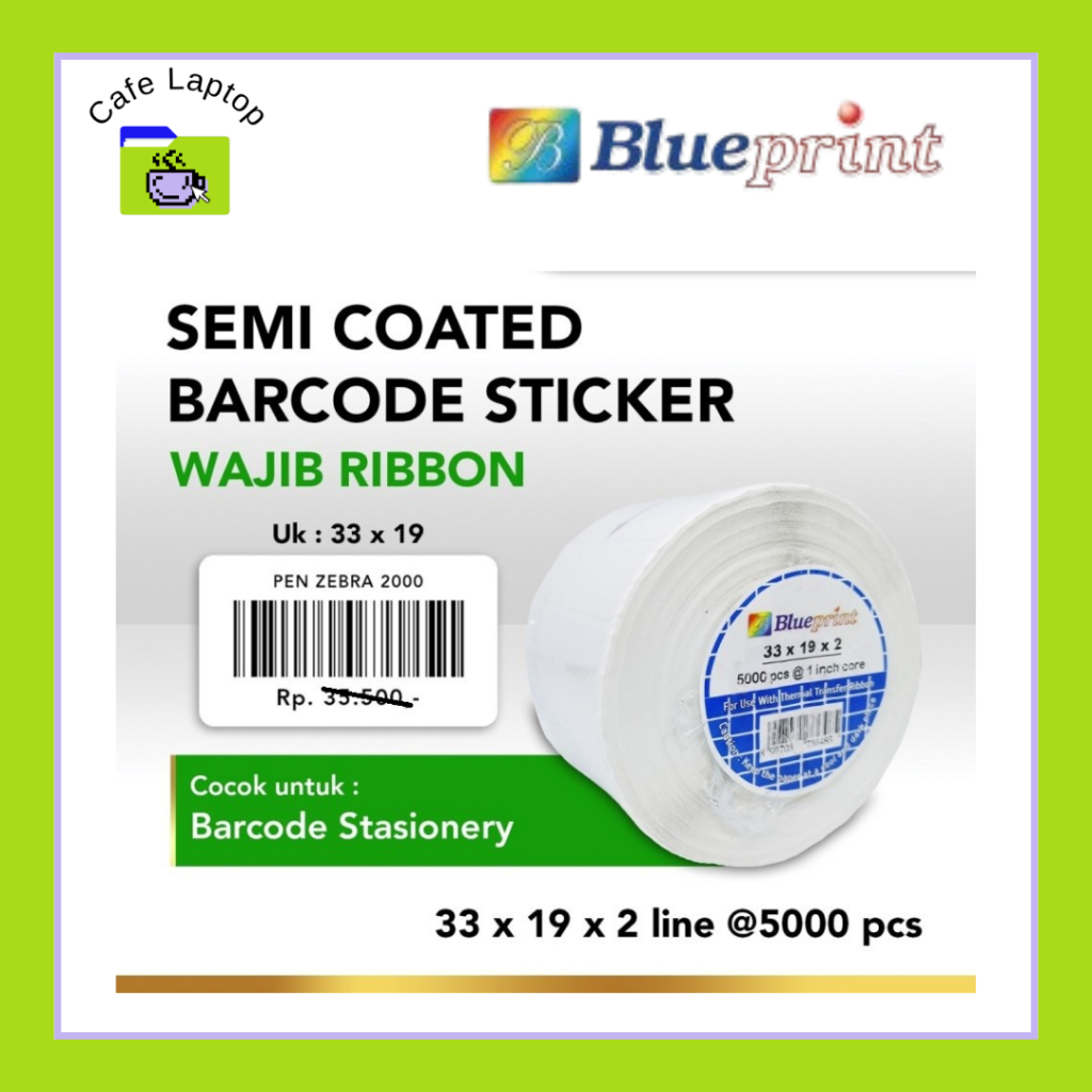 STICKER LABEL BARCODE BLUEPRINT 33X19X2 SEMI COATED [ISI 5000PCS]