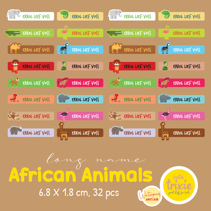 STICKER LABEL NAMA ANAK WATERPROOF AFRICAN ANIMAL LONG NAME