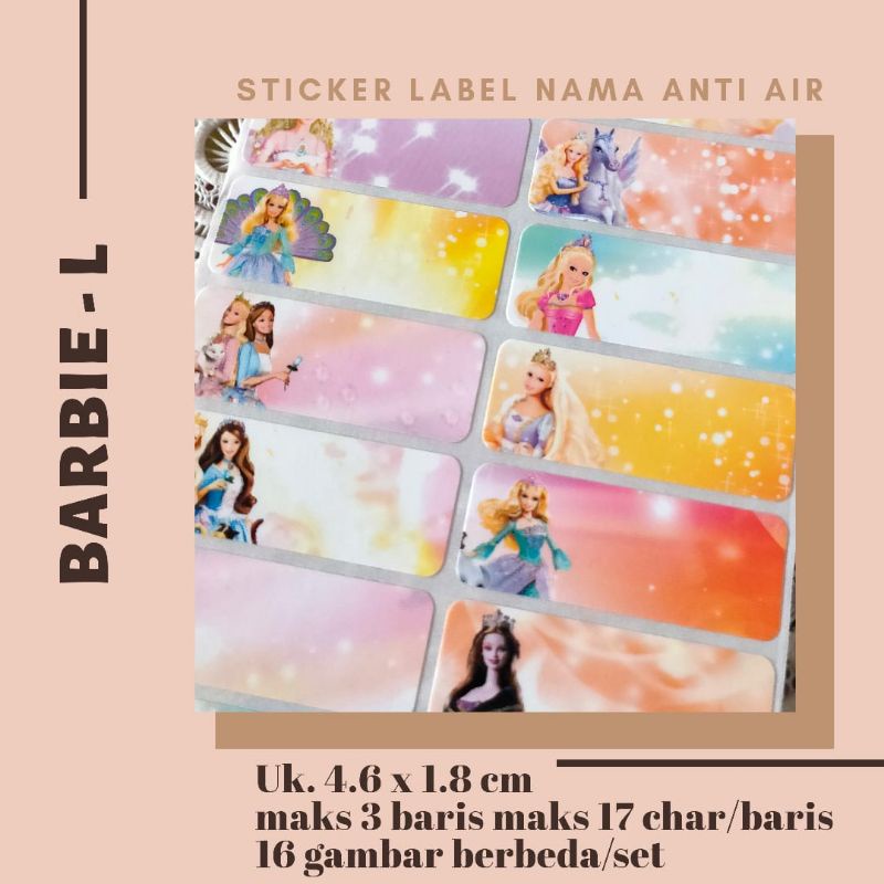 STICKER LABEL NAMA ANTI AIR - MOTIF BARBIE / WATERPROOF NAME STICKER