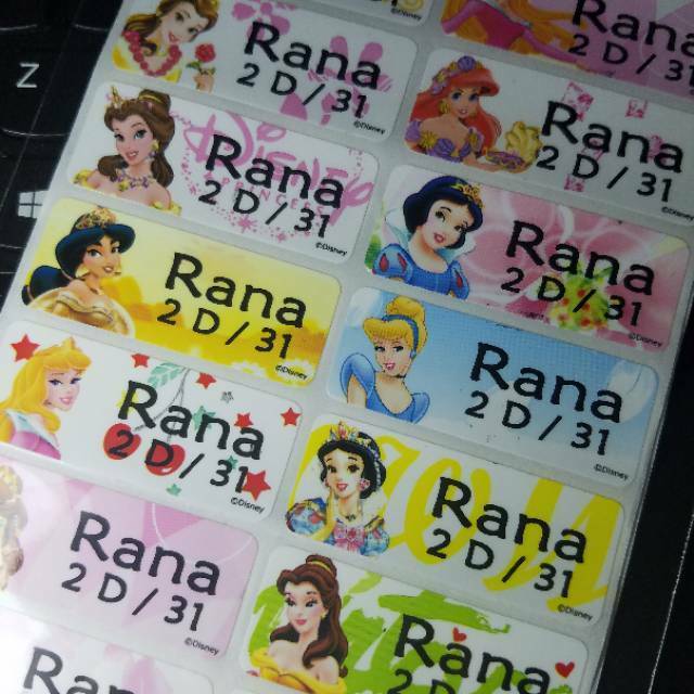 STICKER LABEL NAMA ANTI AIR - MOTIF PRINCESS / WATERPROOF NAME STICKER