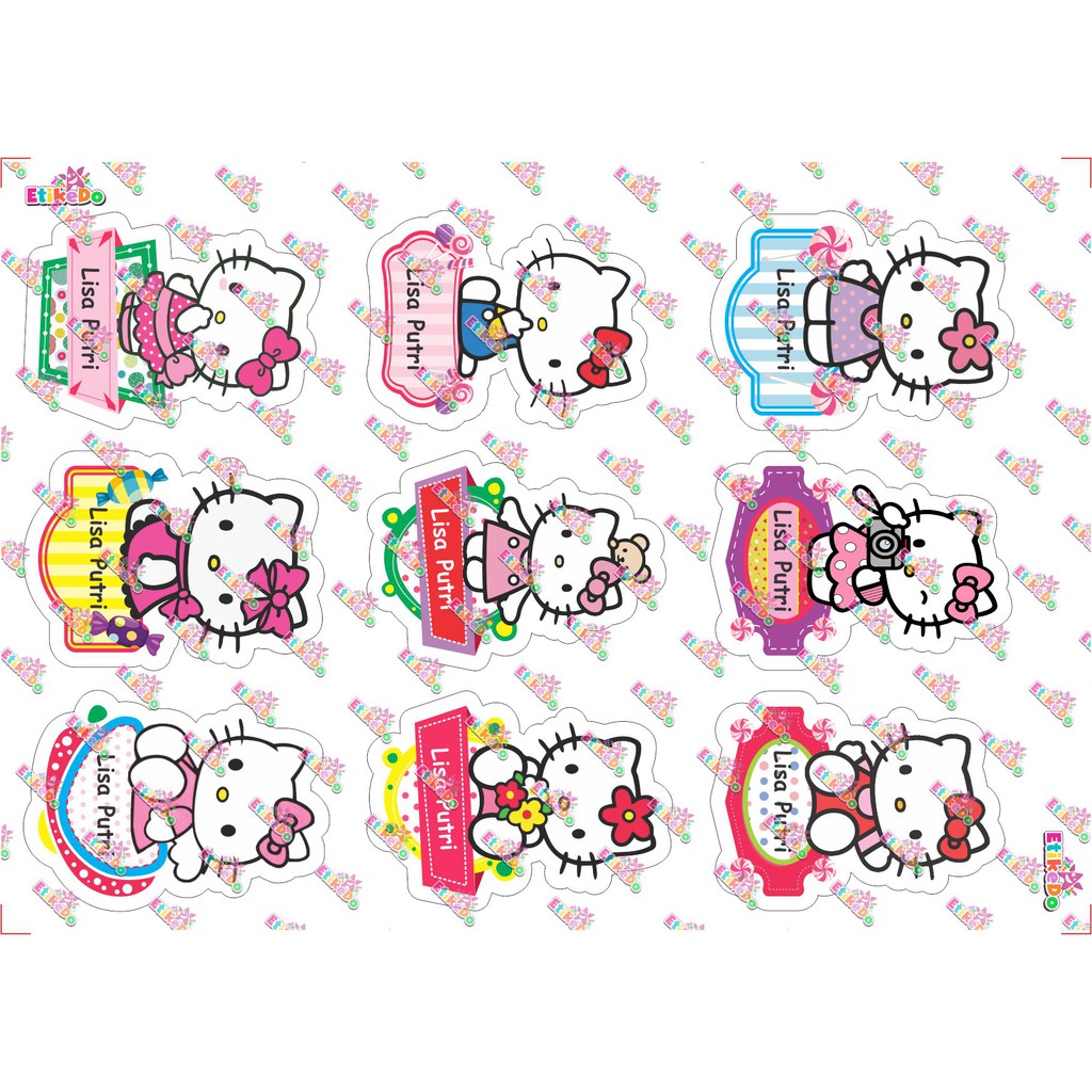 - Sticker label nama Hello Kitty anti air, anti sobek, dan tidak luntur.
