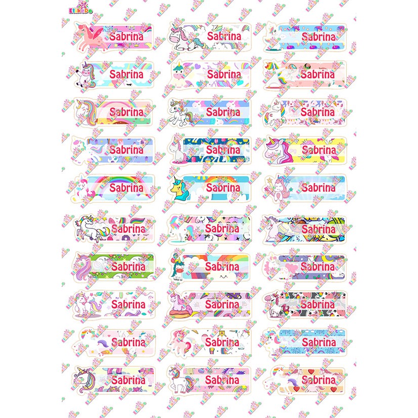 STICKER LABEL NAMA UNICORN WATERPROOF 72 - 2 Nama UN1S2