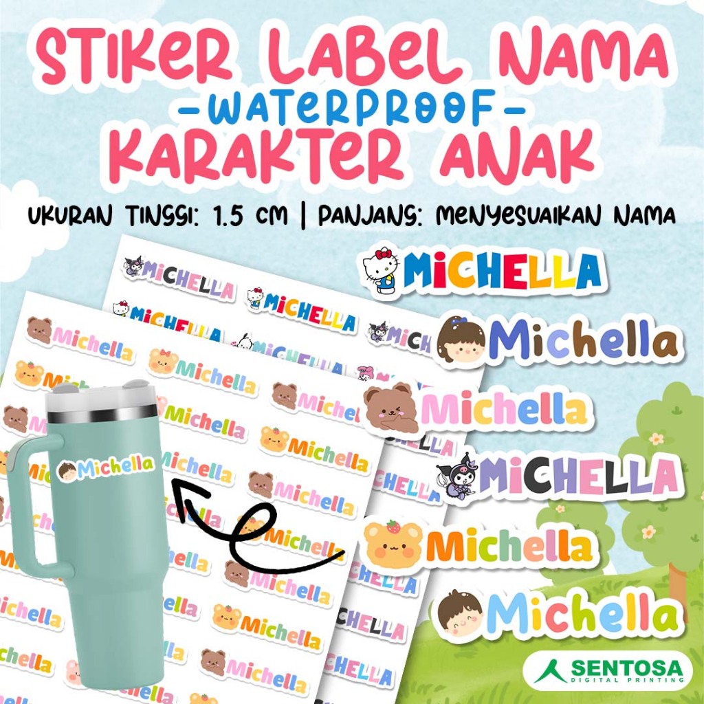 STICKER LABEL NAMA WATERPROOF KARAKTER SANRIO/LABUBU/OUTERSPACE/ANIMALS