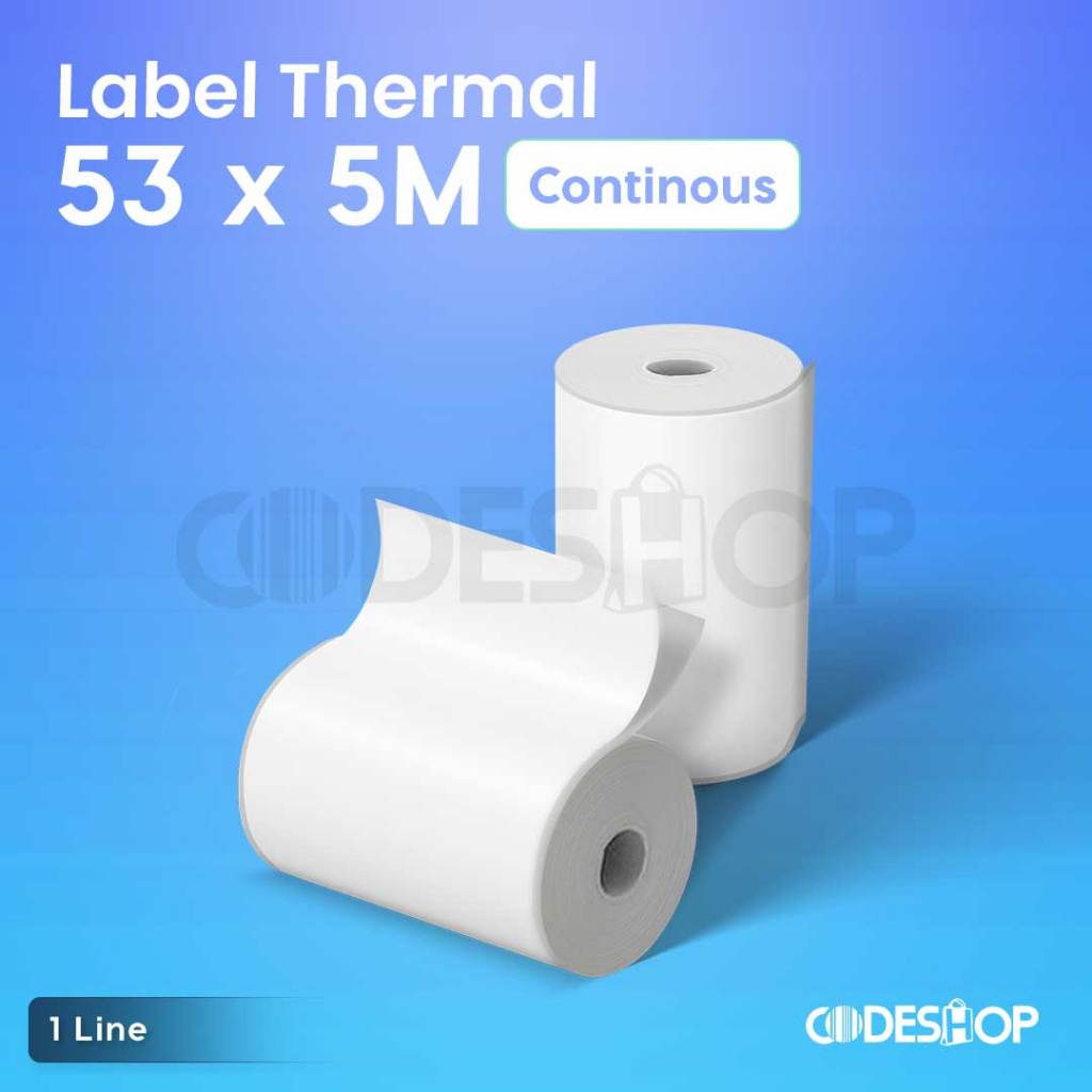 Label stiker thermal 53 x 5 M merupakan Roll label stiker dengan ukuran setara dengan kertas thermal 57 x 30mm, jadi dapat digunakan oleh semua jenis printer kasir POS dengan ukuran 58mm.
