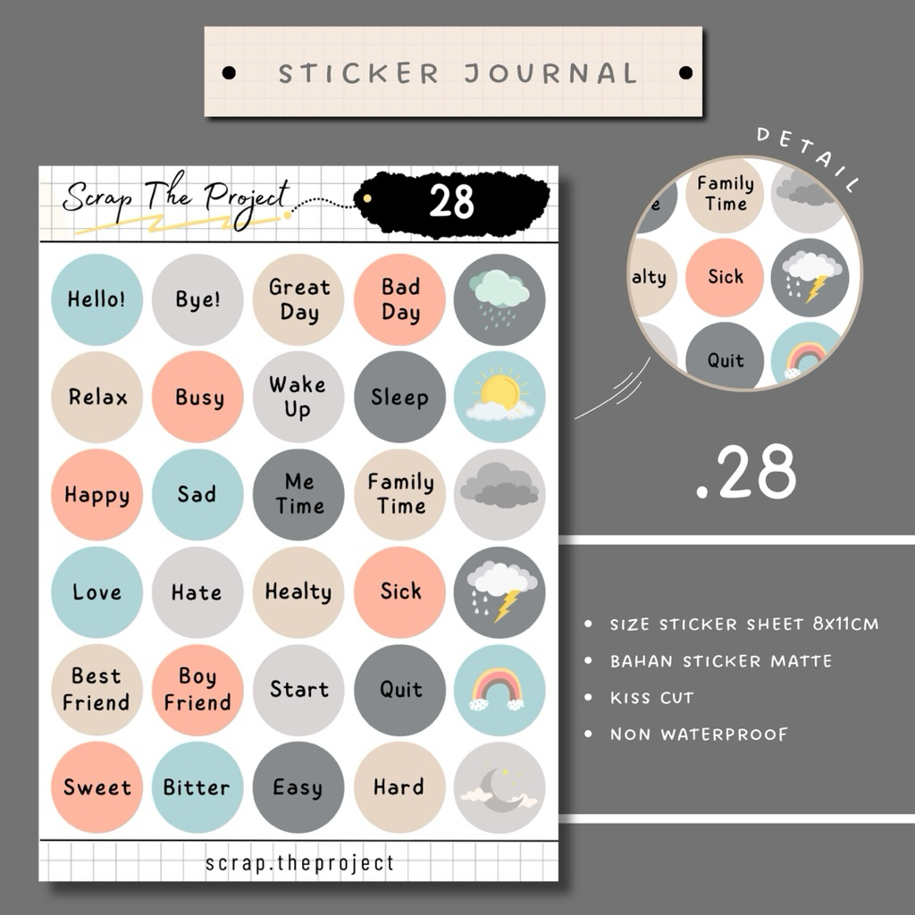 Stiker yang cocok untuk jurnal, planner, scrapbooking atau area kering (didalam buku/ catatan).