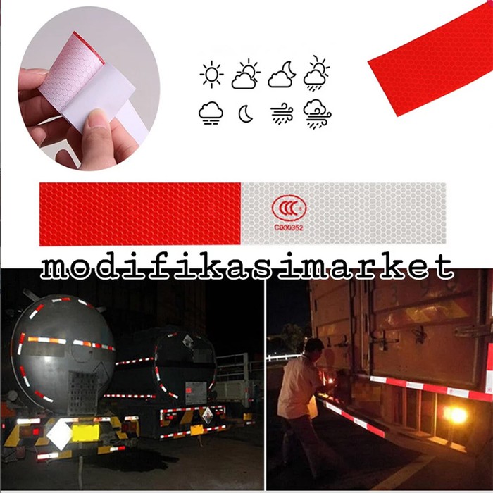 STICKER REFLECTOR PEMANTUL CAHAYA STICKER REFLECTIVE WARNING SIGN RED
