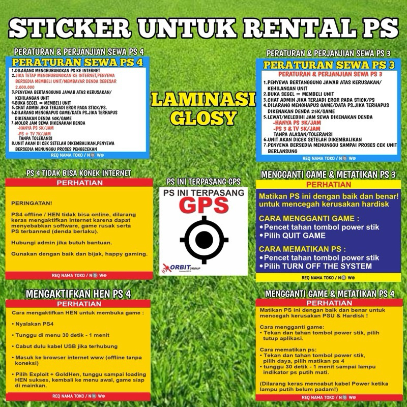 STICKER UNTUK RENTAL PS, STICKER UNTUK RENTAL PLAYSTATION, STICKER PERATURAN RENTAL PS, STICKER PS
