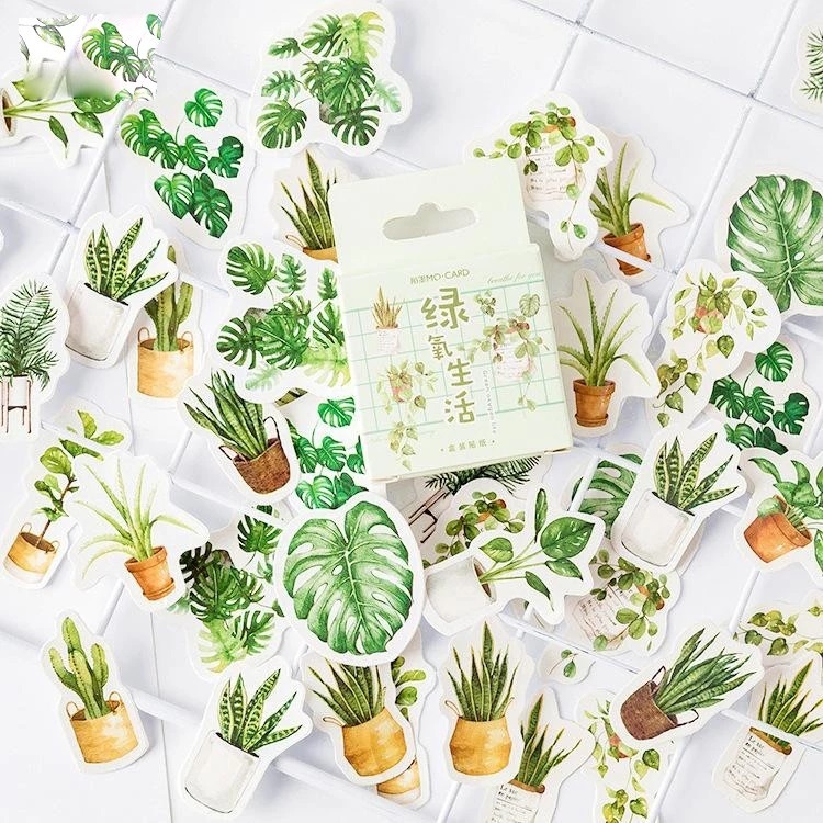 STICKERSTOCK 46 Pcs GREEN PLANTS Deco Sticker Planner DIY Scrapbook Kotak