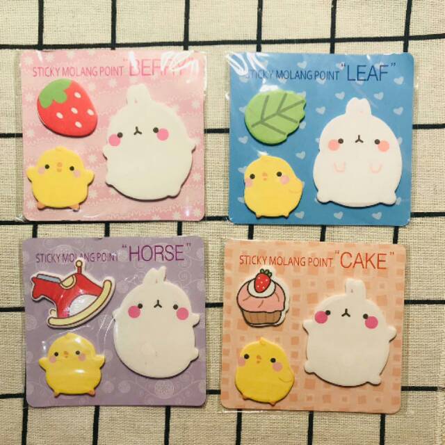 Sticky notes set molang, tersedia 4 warna