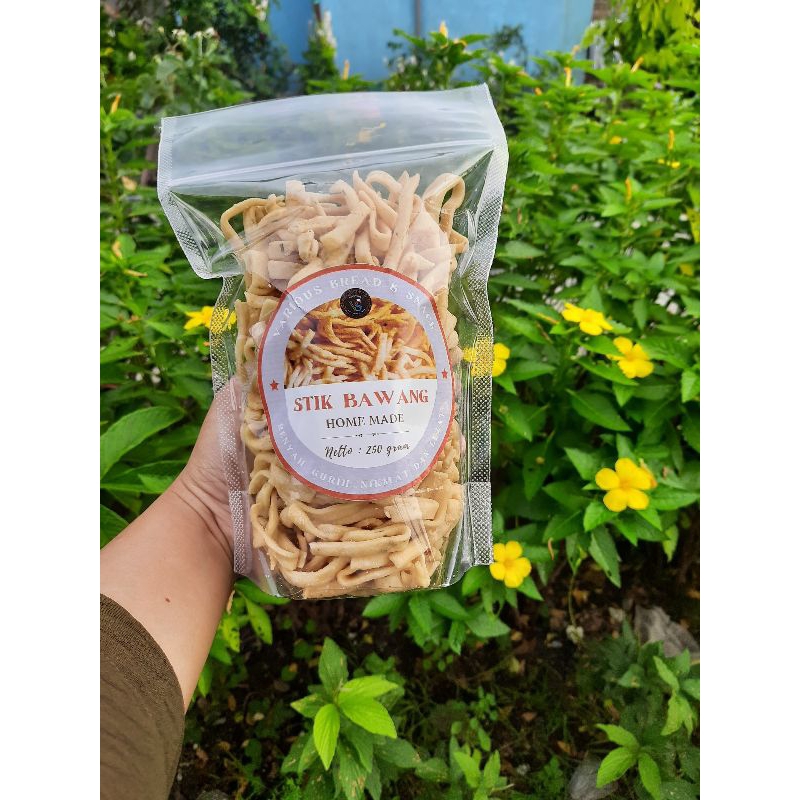 Stik bawang yang terbuat dari bahan-bahan pilihan dengan tekstur yang renyah dan tidak keras.