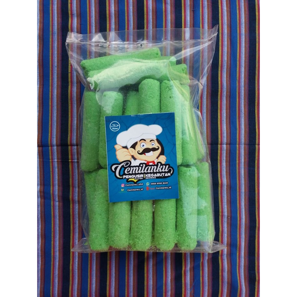 Adalah makanan ringan berbentuk stick roll rasa Pandan .