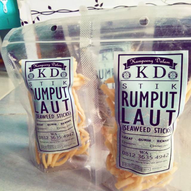 STIK RUMPUT LAUT merupakan camilan sehat untuk keluarga. Proses pembuatan home made dan menggunakan bahan tepung terigu, tapioka, rumput laut, telur, air dan garam. Sangat cocok menemani untuk kumpul dengan keluarga dan sahabat.