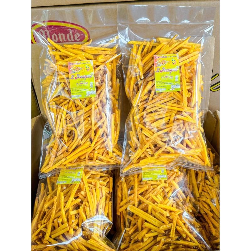 Berbahan dasar talas yg diolah menjadi kripik berbentuk stik panjang