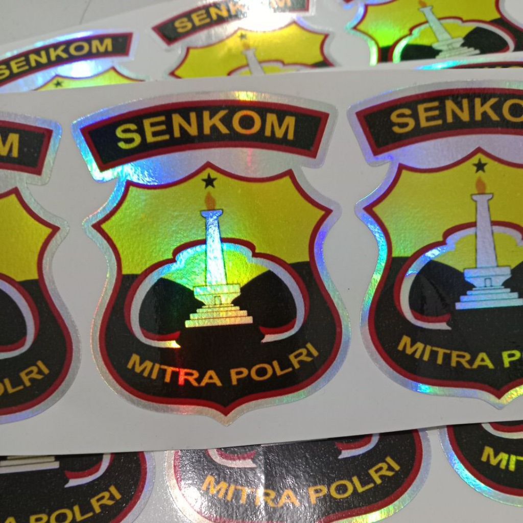 stiker hologram laminasi glossy logo SENKOM ukuran tinngi8 cm lebar 6 cm ,material hologram yg dilaminasi tebal membuat stiker lebih mewah karena efek hologram dan warna tdk gampang pudar tahan air dan panas , perekat dipastikan nempel tdk mudah lepas ,stiker tdk timbul , bisa ditempel dikendaraan ,dikaca, dsb