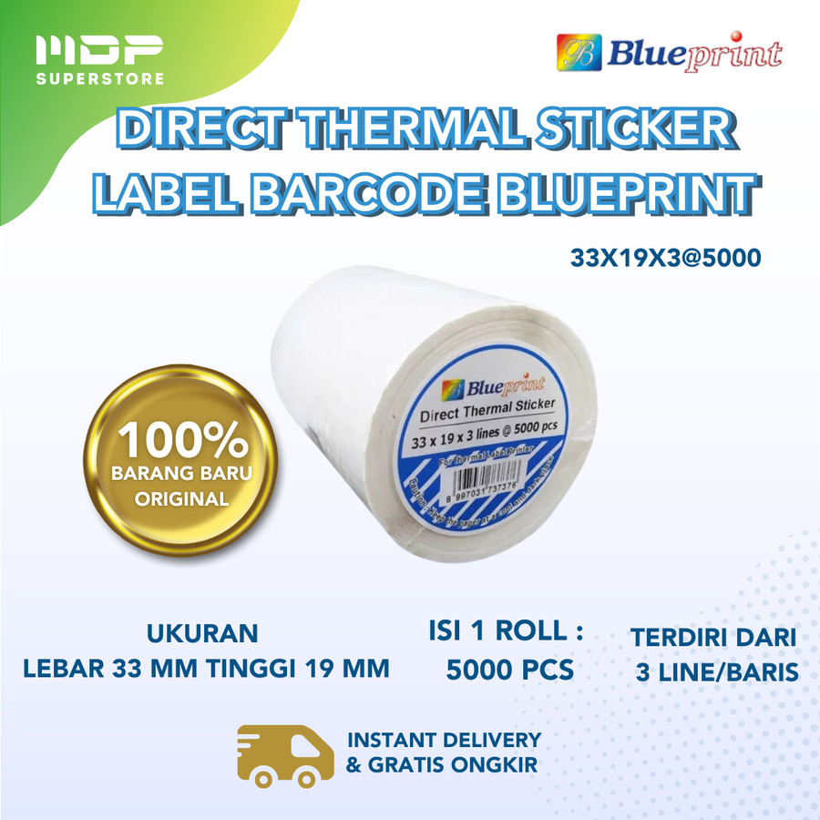 STIKER LABEL BLUEPRINT 33X19X3@5000PCS FOR THERMAL LABEL PRINTER (BP-DTS33193) DIRECT THERMAL