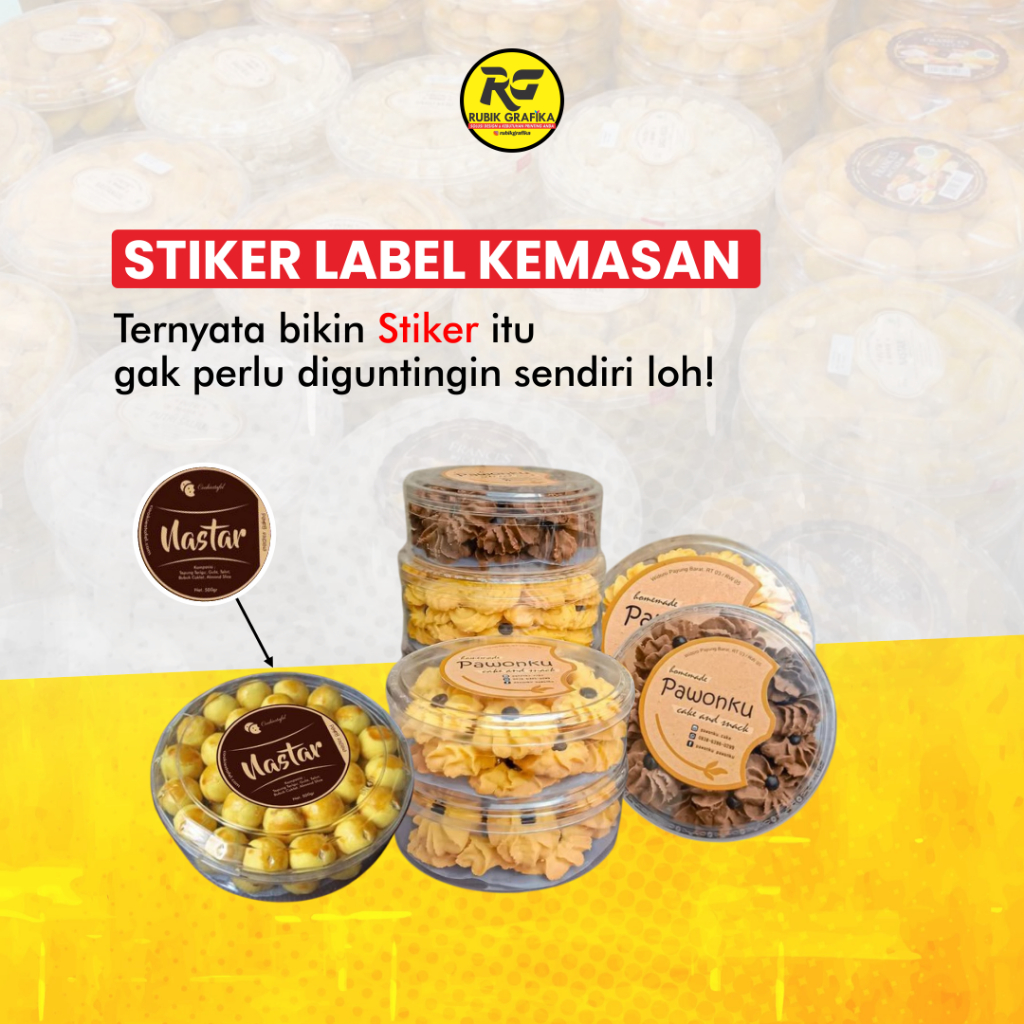 Stiker dengan bahan utama kertas dengan daya rekat sederhana, cocok digunakan untuk label stoples maupun kemasan makanan ringan seperti camilan, kue lebaran dll, tidak direkomendasikan untuk label frozen food. jika anda memerlukan stiker dengan kelebihan tahan air, silahkan memilih produk "STIKER VINYL" di toko kami.