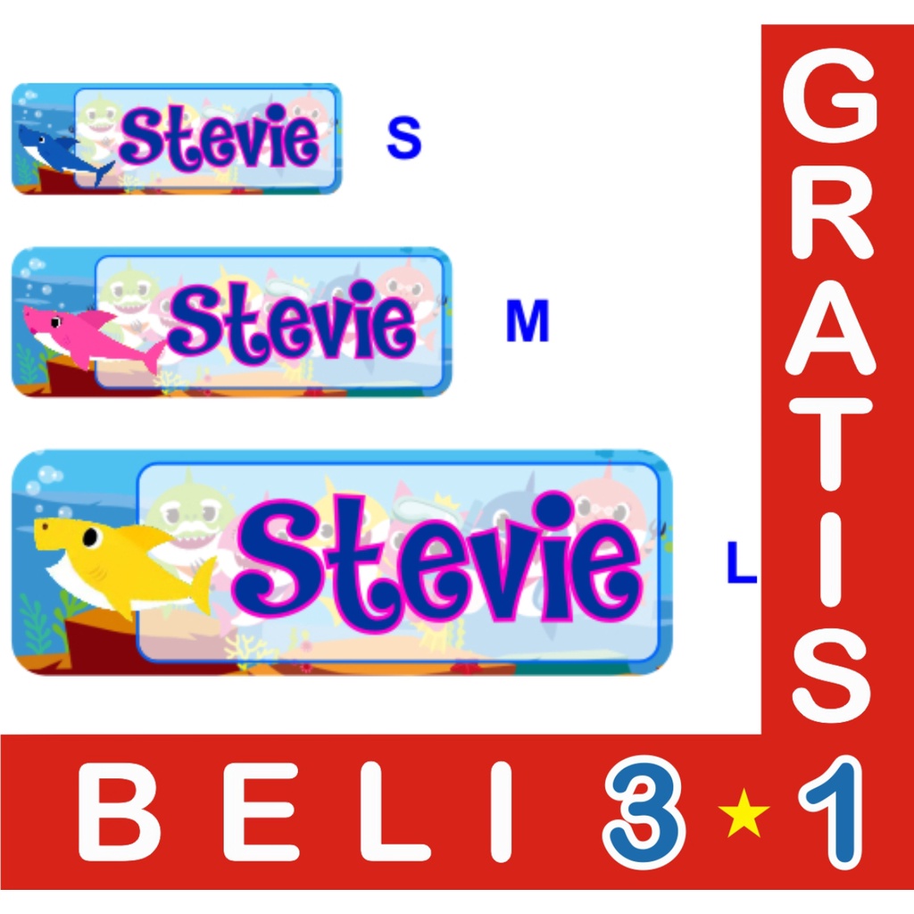 STIKER LABEL NAMA WATERPROOF BASIC BABY SHARK