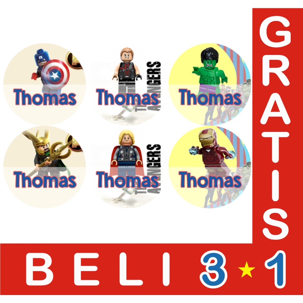 STIKER LABEL NAMA WATERPROOF CIRCLE AVENGER LEGO