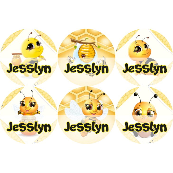 STIKER LABEL NAMA WATERPROOF CIRCLE CUTE BEE