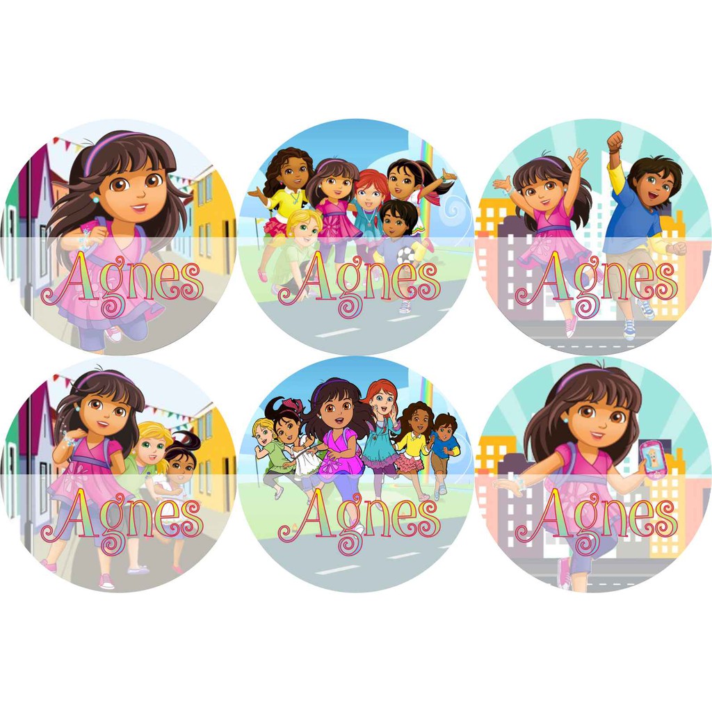 STIKER LABEL NAMA WATERPROOF CIRCLE DORA AND FRIENDS