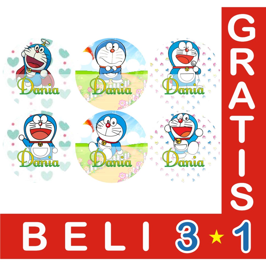 STIKER LABEL NAMA WATERPROOF CIRCLE DORAEMON