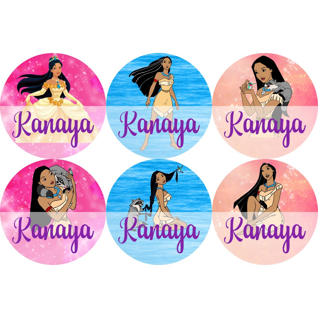 STIKER LABEL NAMA WATERPROOF CIRCLE POCAHONTAS