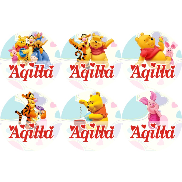 STIKER LABEL NAMA WATERPROOF CIRCLE WIINIE THE POOH 2