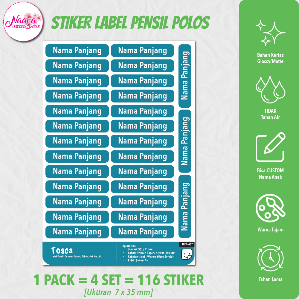STIKER LABEL PENSIL POLOS NAMA BIRU TOSCA