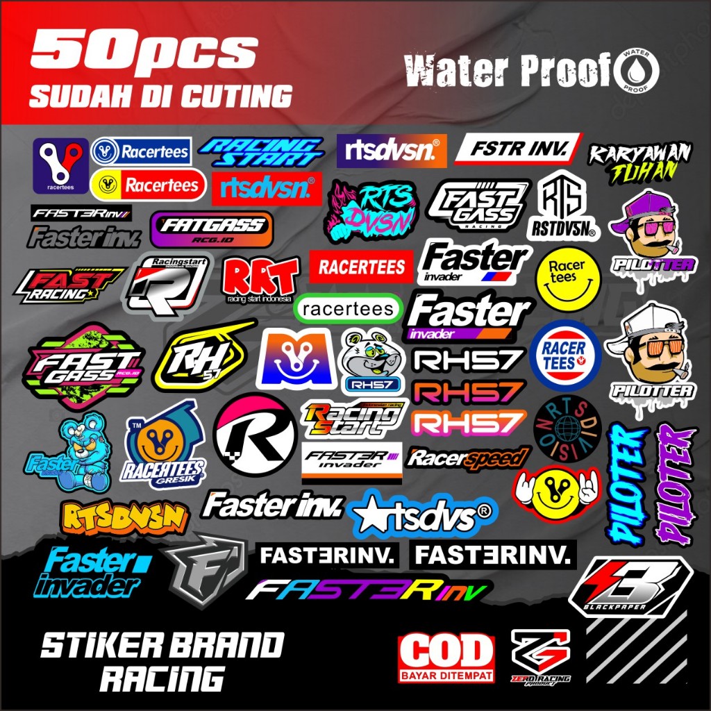 STIKER MINI PACK ISI 50PCS STIKER BRABD BAND VYNIL WATERPROOF