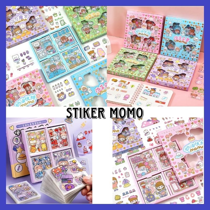 STICKER MOMO, sticker lucu , unik, sangat cantik buat asesoris tempel di buku, gelas, botol, laptop, atau barang lain yang kalian inginkan, sticker ini nati air, sangat bagus & lucu - lucu motif & warna nya