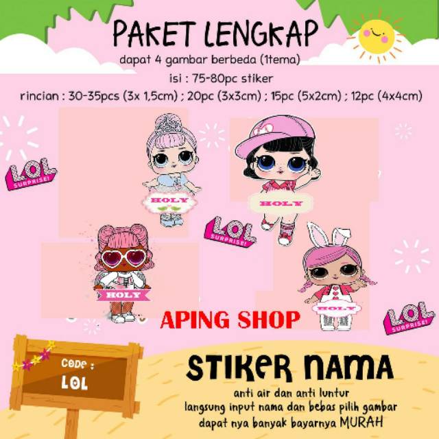 Bentar lagi udah kenaikan kelas..yuk di order stiker nama. Dengan bahan viny yang awet dan tahan lama. Bisa ditempel di buku, botol minum, lunchbox, sepatu, tas, dll tanpa harus takut rusak pada saat dicuci...