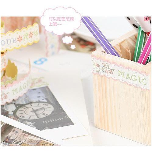 Stiker pita dari bahan kertas dengan aneka tulisan bermotifkan renda. Stiker digulung dalam kotak seperti tape isolasi sehingga mudah disimpan