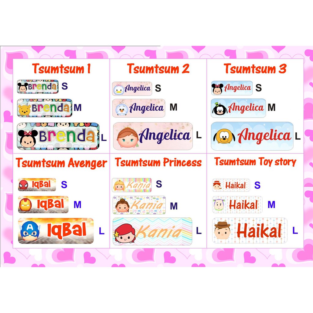 STIKER STICKER LABEL NAMA WATERPROOF BASIC: TSUMTSUM