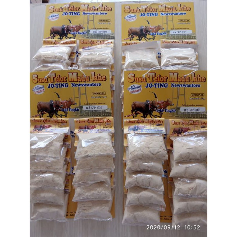 JOTING instan dengan komposisi terbaik,,,antara lain JAHE emprit pilihaproduct STMJn yg berfungsi menghangatkan tubuh. TELOR ayam kampung yg berprotein tinggi,serta SUSU pilihan dan MADU kembang asli yg berfungsi meningkatkan imun daya tahan tubuh terhadap segala penyakit yg akan hinggap.STMJ JOTING sangat banyak di minati oleh semua kalangan terlebih di daerah cuaca dingin.sangat Di minati karena terbuat dari bahan" alami dan tanpa bahan pengawet sehingga tidak ada yg perlu di ragukan lagi.