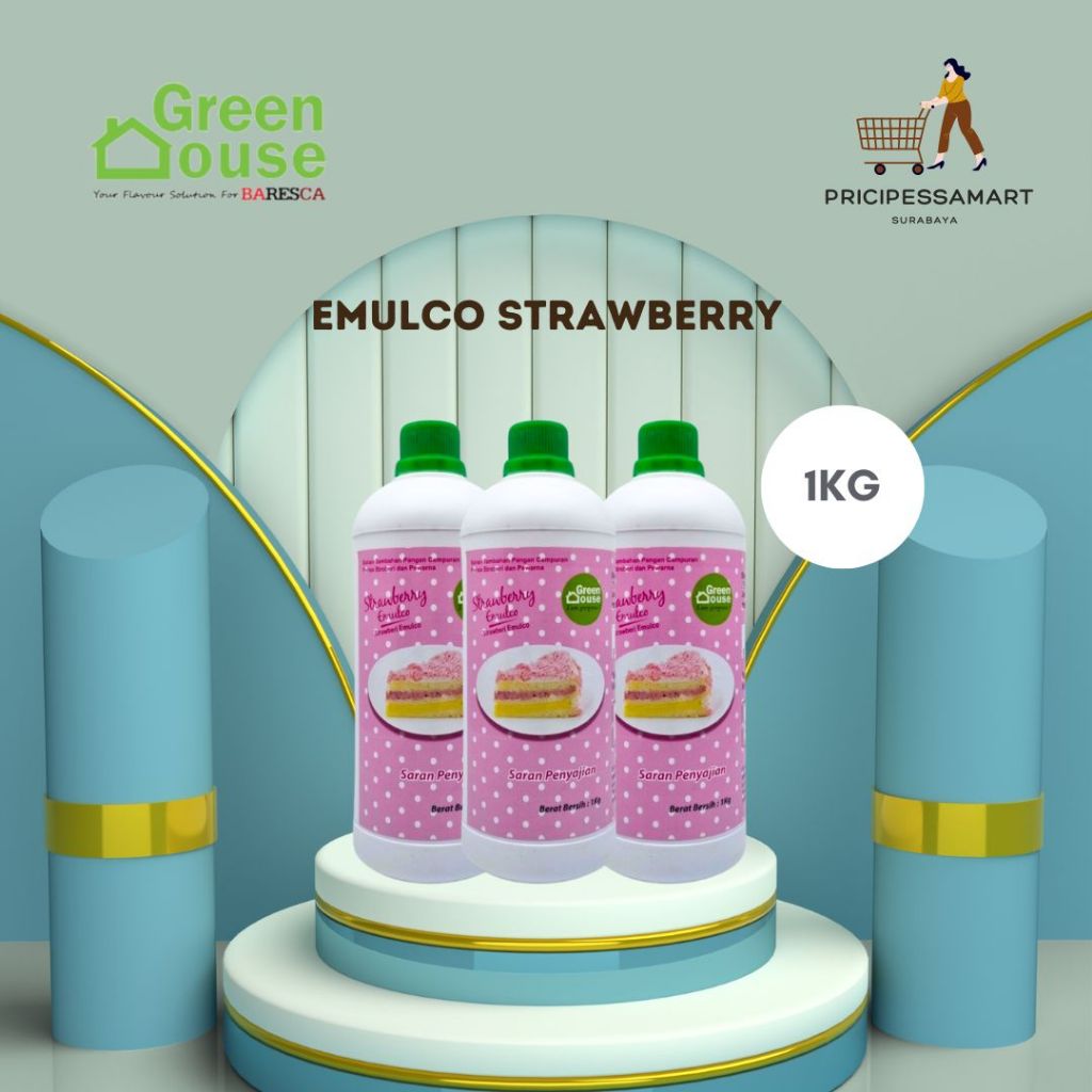 trawberry Emulco produksi Green House - Malaysia, merupakan emulsifier atau pelembut yang juga berfungsi sebagai pewarna dan perasa makanan beraroma strawberry dengan hasil warna merah muda/pink.