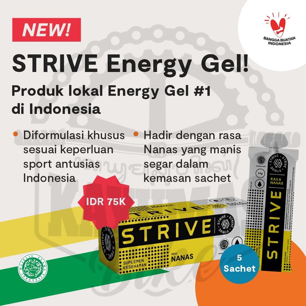 terdapat juga berbagai nutrisi yang dukung mekanisme tubuh optimal. Strive Energy Gel baik digunakan selama dan setelah berolahraga