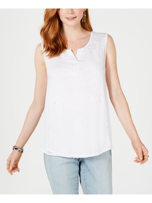 STYLE - COMPANY Женская белая вечерняя майка Henley без рукавов, Белый