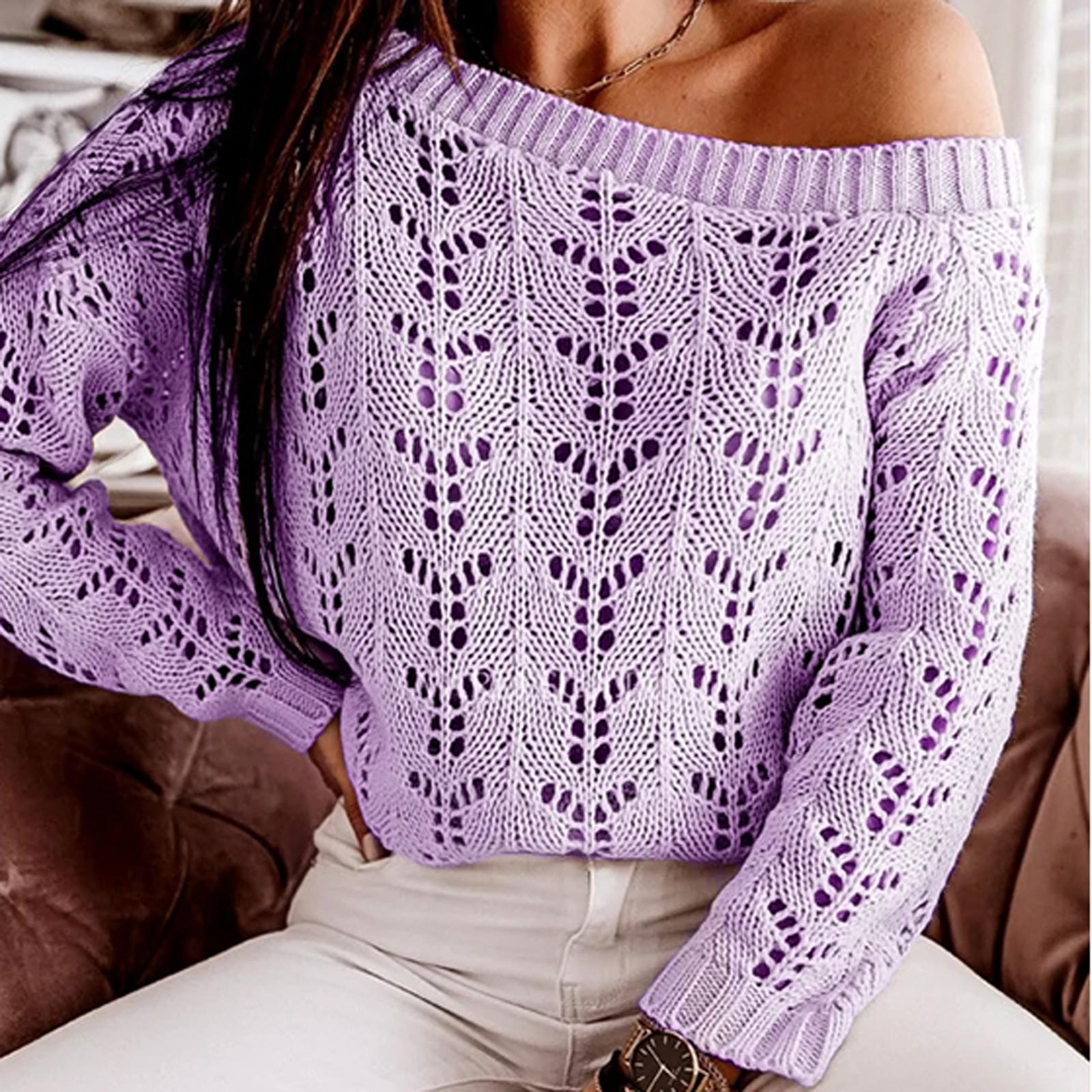 (SU)Женская мода сплошной цвет выдалбливают сексуальные свитера с длинными рукавами топы