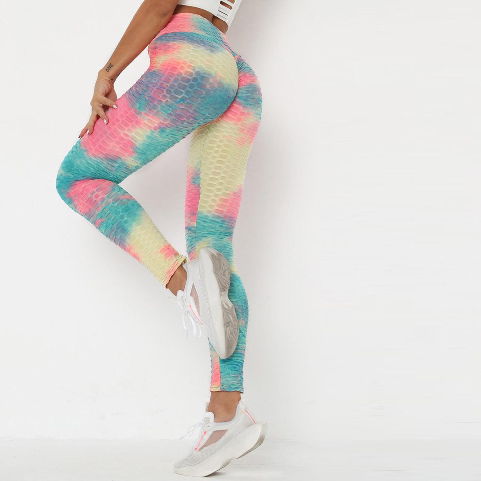(SU)Женские брюки для йоги с принтом тай-дай, узкие брюки для упражнений с подтяжкой бедер L синий