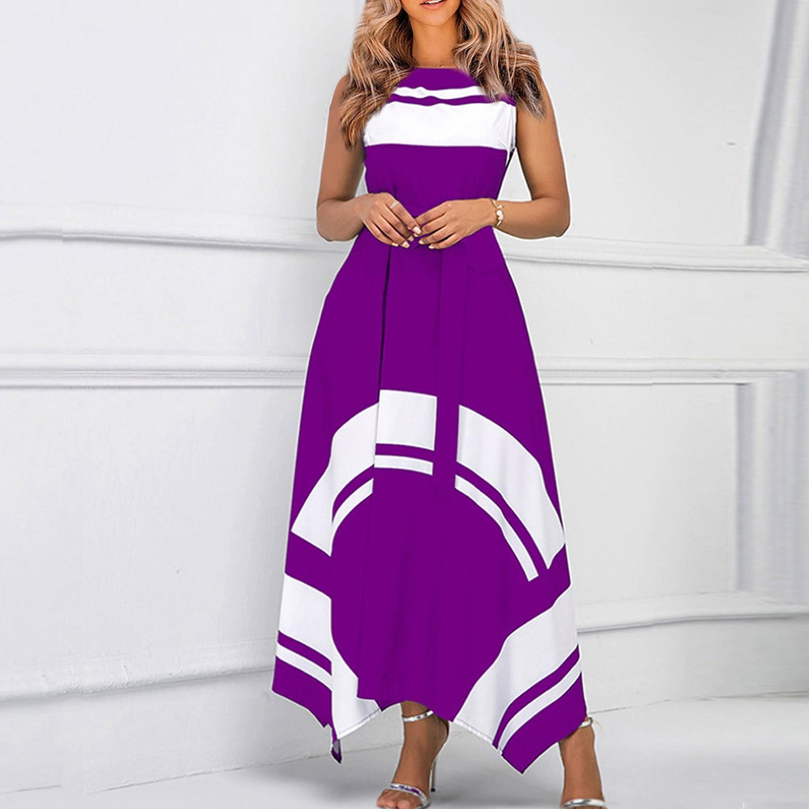 (SU)Женское летнее модное длинное платье без рукавов с асимметричным подолом и принтом для отдыха и отдыха L фиолетовый