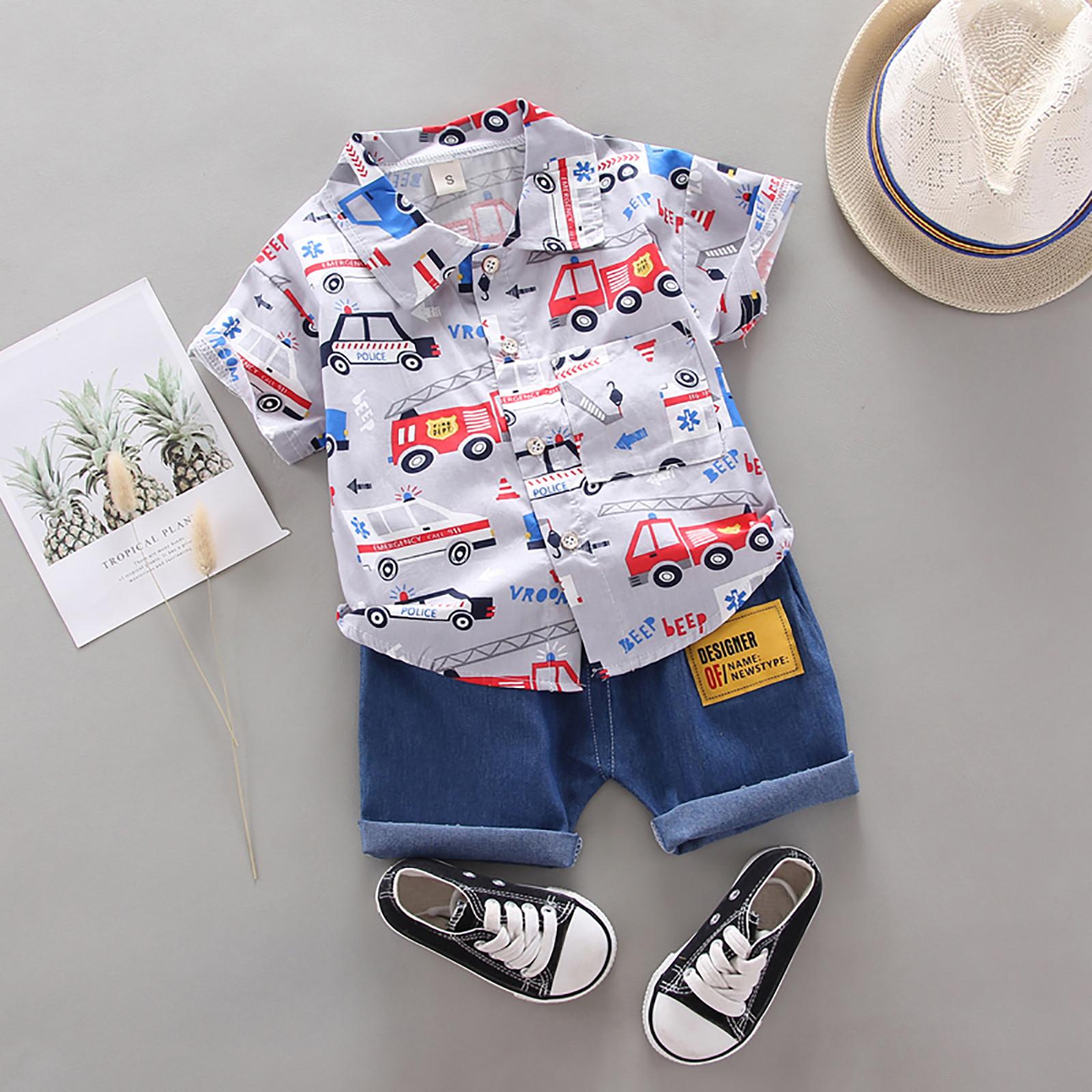 (SU)Комплект одежды для маленьких мальчиков 1-4 лет, футболка с героями мультфильмов, топы + шорты, летние наряды 100=L серый