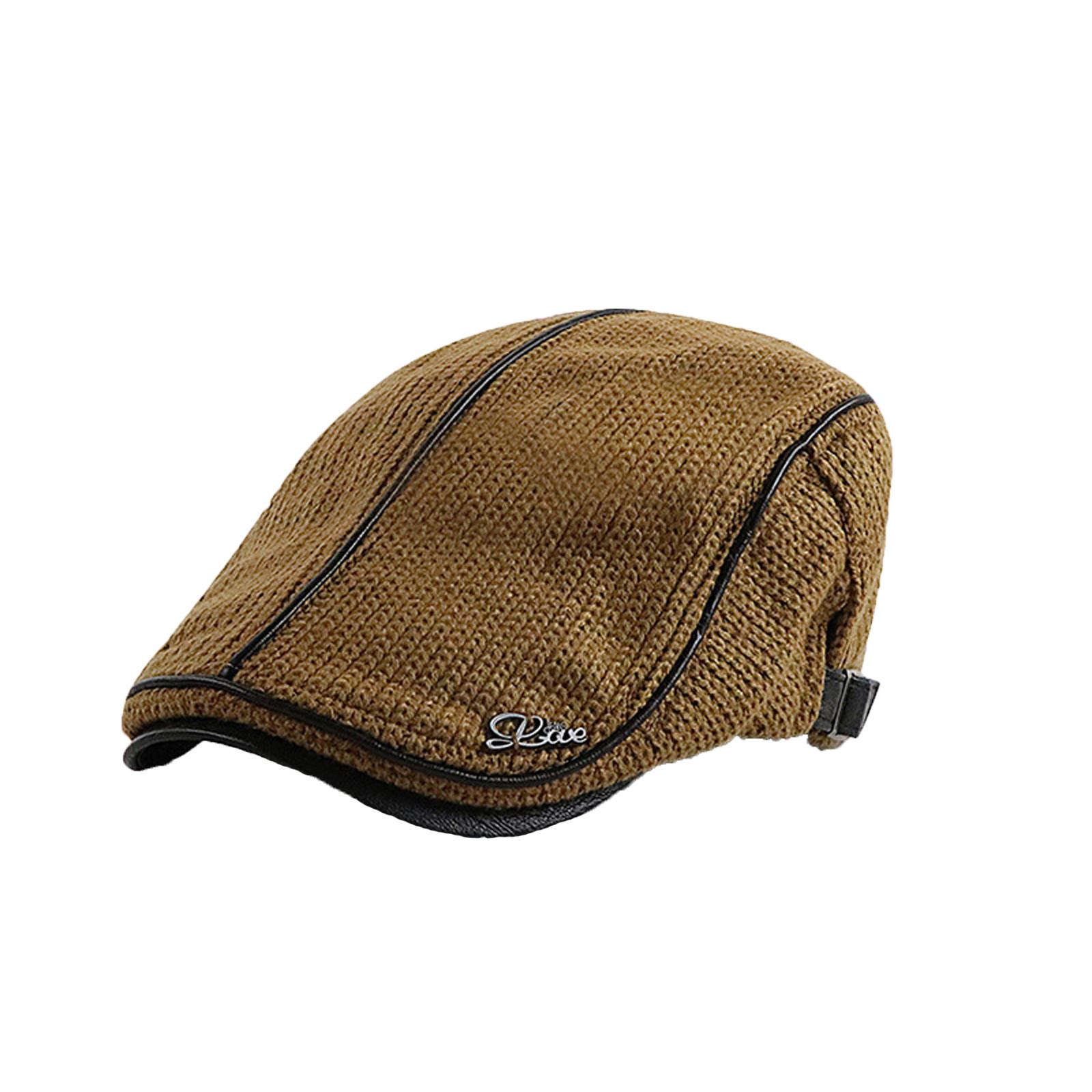 (SU)Мужская вязаная плоская кепка с мягкой подкладкой, теплые береты, повседневная уличная шапка с козырьком вперед One size